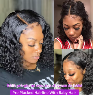- 1 x Deep Wave 180% Density Pre-Plucked Side Part Short Bob 13*4 Lace Frontal Brazilian Virgin Human Hair Wig